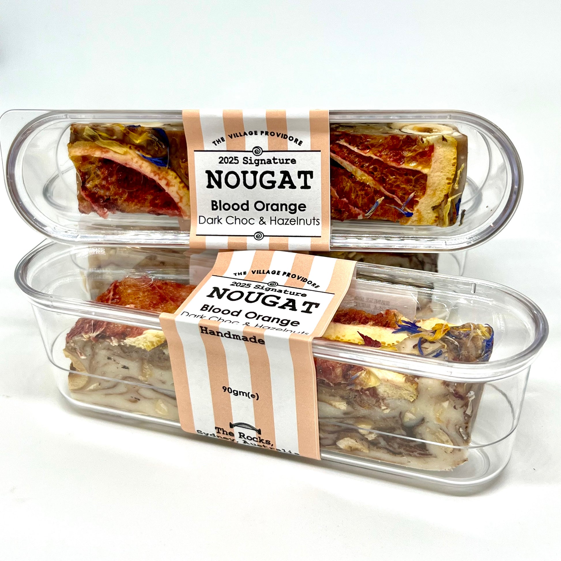 Our nougat tribute to the perfect balance of tart and sweet. Rich blood orange flavour infused with premium dark chocolate, and studded with crunchy roasted hazelnuts combined with our smooth and delicious handmade nougat.