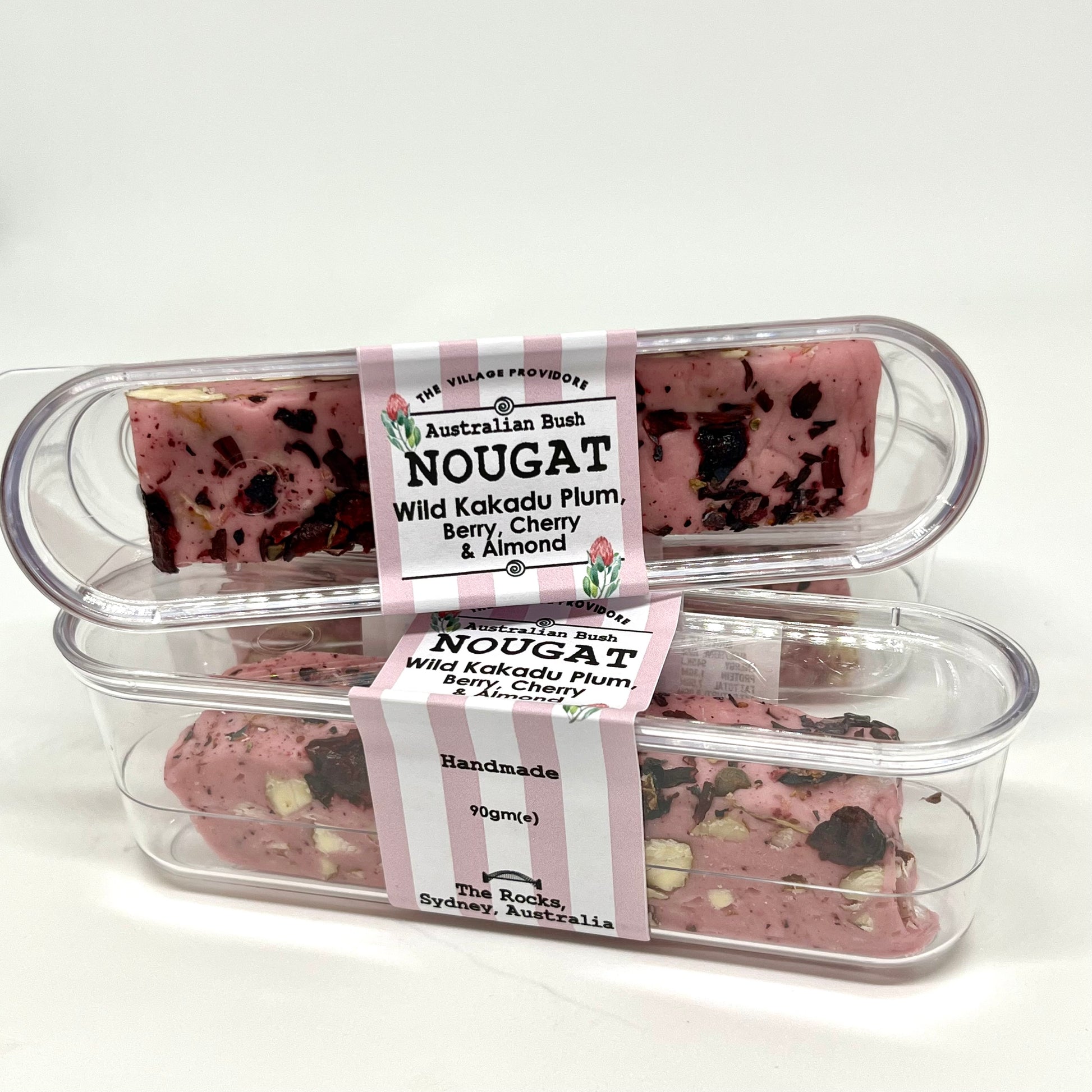 Our nougat tribute to Australia's incredible native ingredients. Sweet cherry flavour enhanced with exotic Kakadu plum, and studded with crunchy roasted almonds combined with our smooth and delicious handmade nougat.