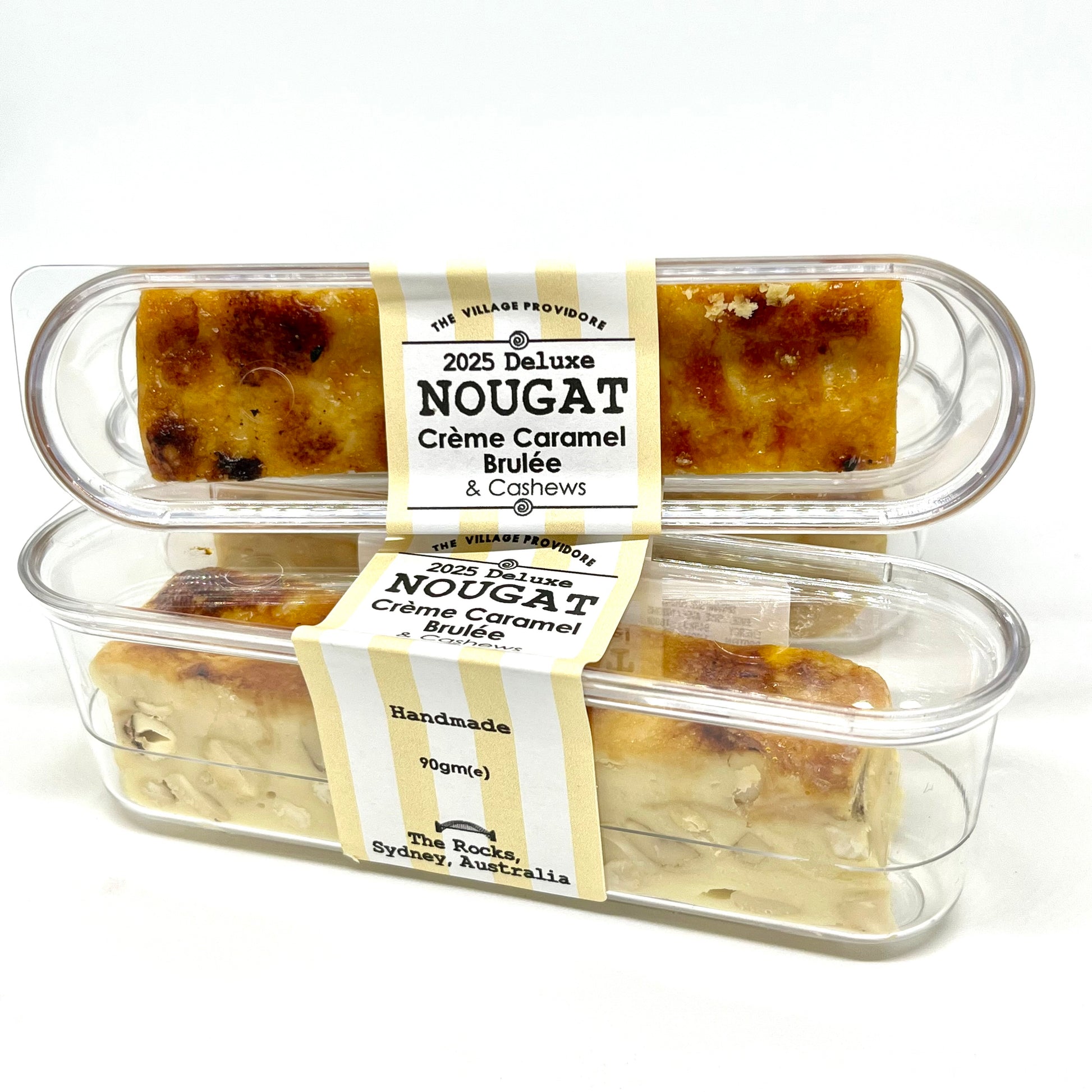 A world first combining the elegant dessert flavour of crème brûlée and creme caramel in luxurious cashew studded nougat!