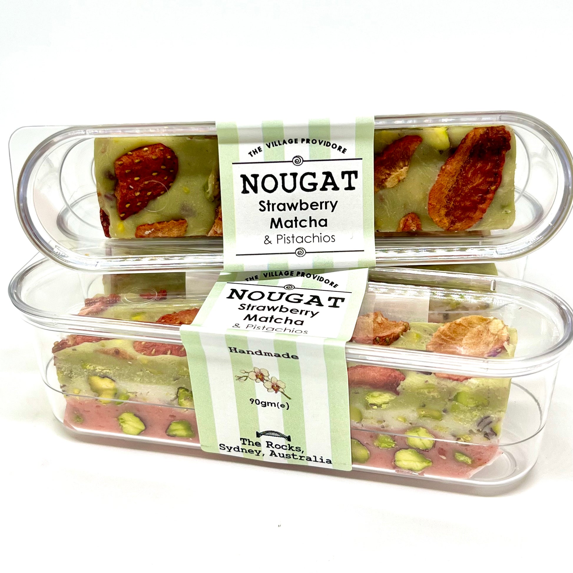 One of our new favourites - a modern fusion flavour with layers of sweet strawberries, strawberry nougat, earthy matcha nougat and premium pistachios!