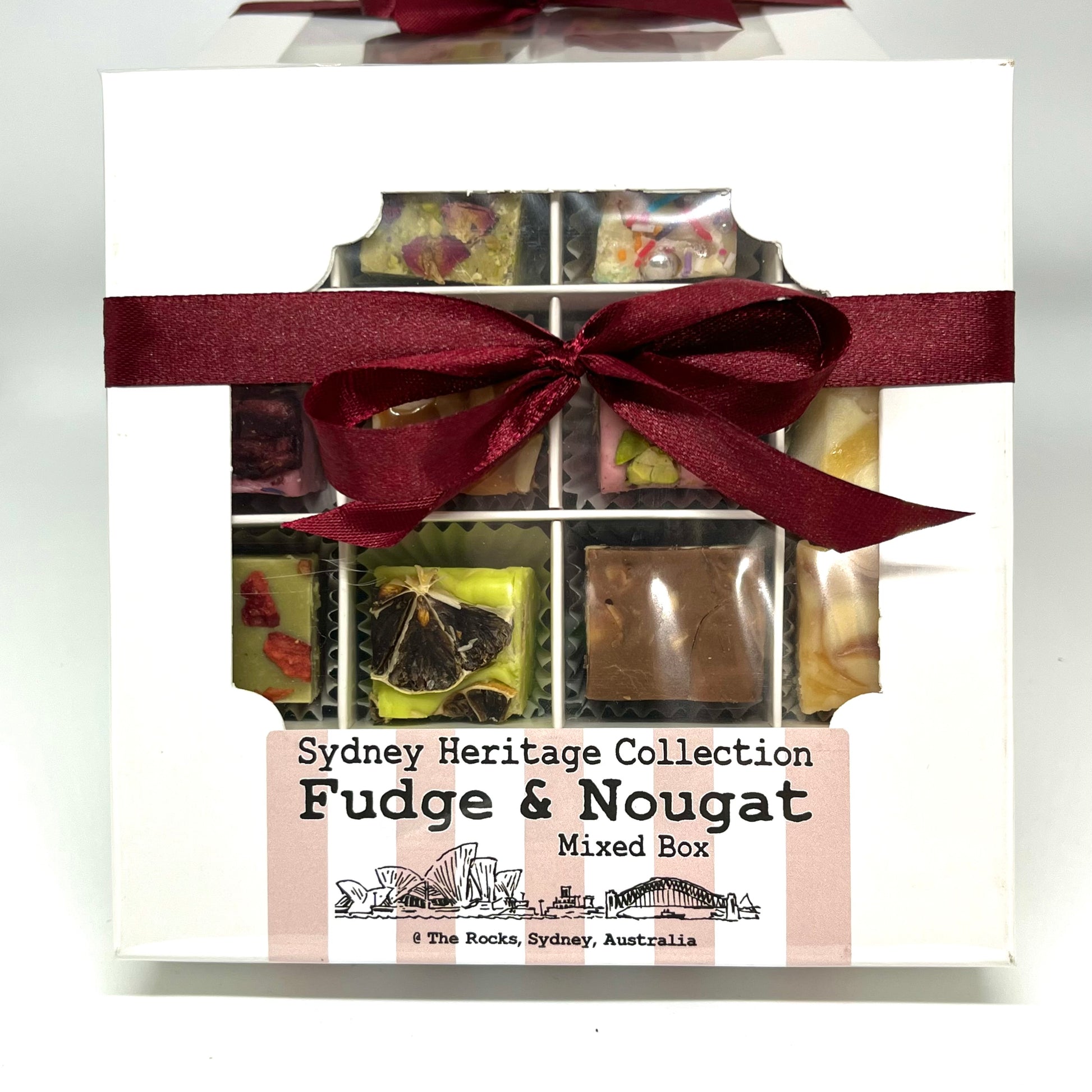 This curated selection includes 8 pieces of our signature fudge and 8 pieces of traditional nougat, showcasing the flavours that have made us a favourite at The Rocks Markets.